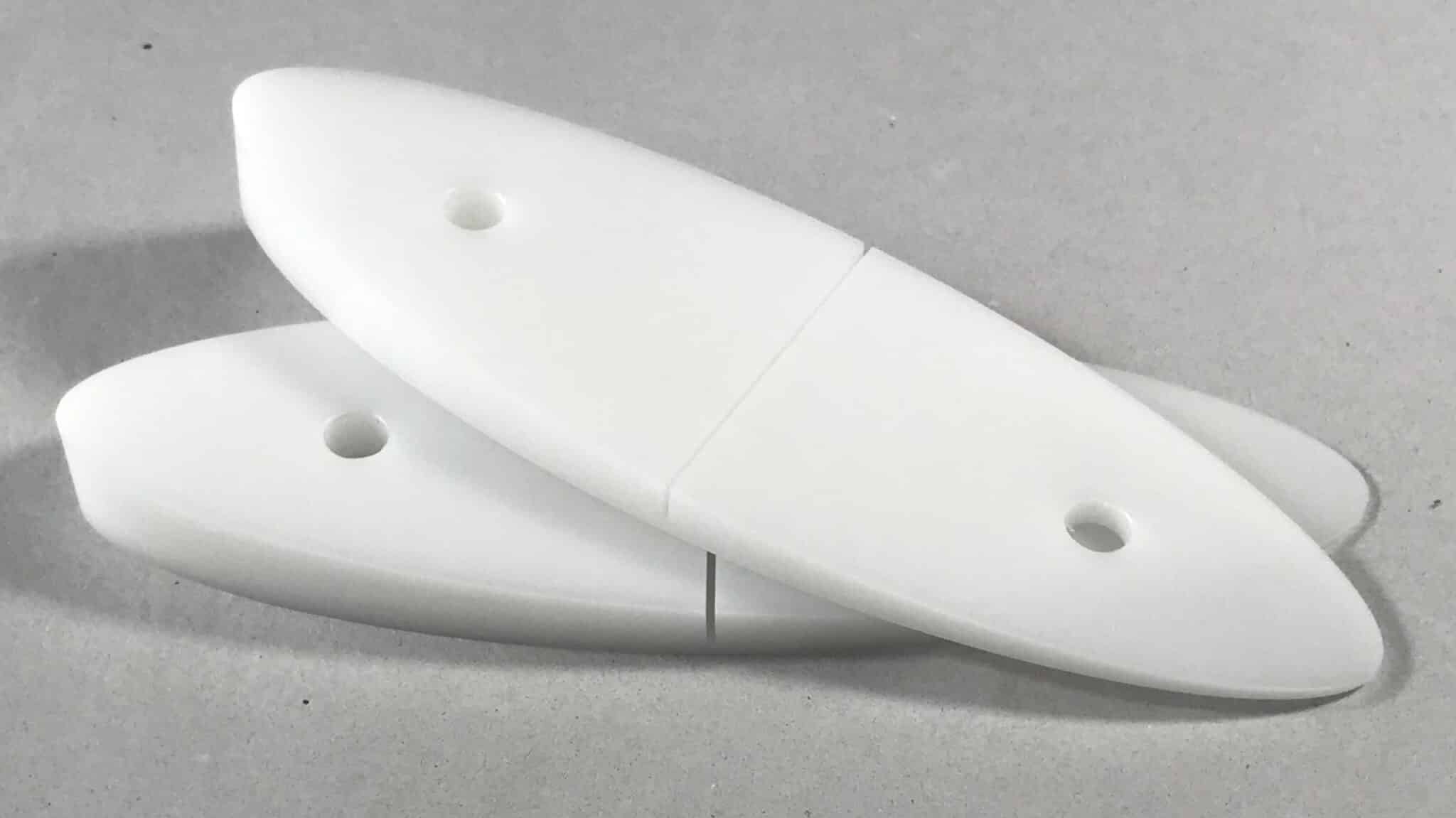 2 pezzi di piastre di livellamento in POM resistente all'acqua e agli urti. Compensa una differenza di poppa di circa 5 gradi su circa 50-60 cm (15 mm per lato). Necessario per TenderConnect se la coda è più arrotondata.